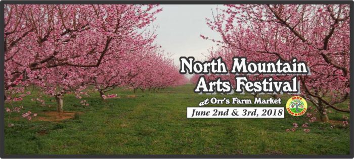 North Mountain Arts Festival - June 2, 2018 jonathan 10 years ago Event Date & TimeStart: June 2, 2018 at 9:00 AMEnd: June 3, 2018 at 4:00 PM(Saturday)